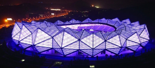 作為一個(gè)新興的建筑形式,很多膜結(jié)構(gòu)建筑給人的感覺是超越時(shí)代的新穎,這就決定了我們不能選用太低端的膜材,那樣會(huì)拉低整個(gè)建筑的品位,但是用最高檔的ETFE膜又太貴,綜合來說,PTFE這個(gè)中等偏上的膜材是性價(jià)比最優(yōu)的。