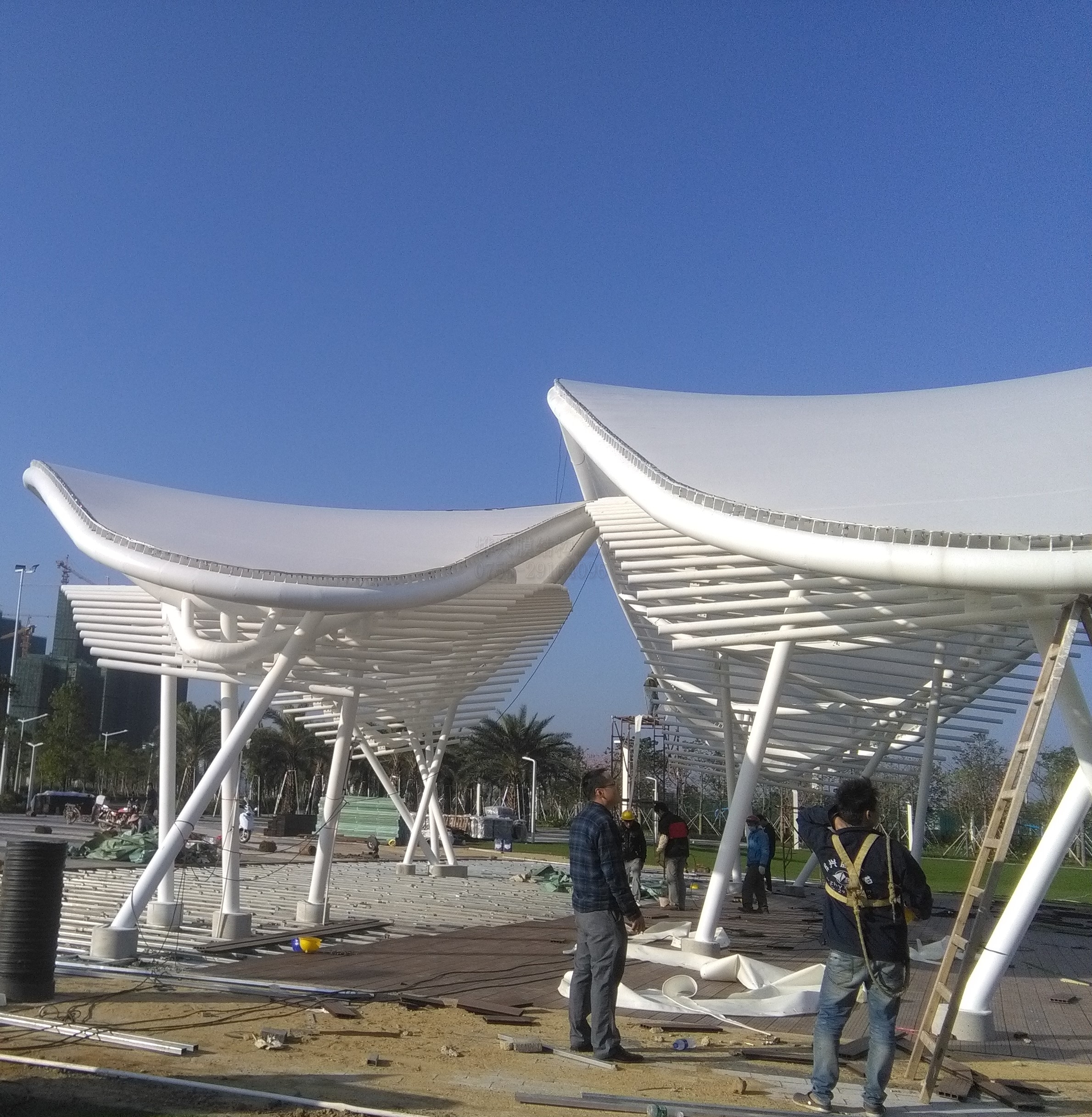 深圳燁興膜結(jié)構(gòu),到2016年已專注膜結(jié)構(gòu)12年,鋼結(jié)構(gòu)16年,擁有設(shè)計(jì)與施工雙一級資質(zhì)的專業(yè)團(tuán)隊(duì),且為中國膜結(jié)構(gòu)會員。燁興從事膜結(jié)構(gòu)設(shè)計(jì),制作,施工為一體,擁有自己的鋼結(jié)構(gòu)工廠和膜結(jié)構(gòu)加工廠,為您專業(yè)設(shè)計(jì)獨(dú)屬于您的膜結(jié)構(gòu)藝術(shù)景觀。