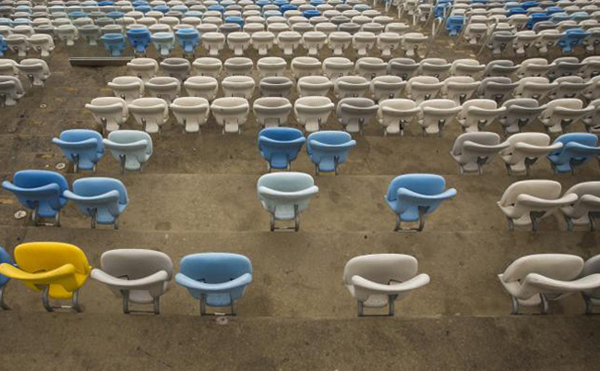 里約奧運會謝幕至今已有近半年時間,在這短短的半年時間,由于場館荒廢,沒有得到必要的維護保養(yǎng),曾經(jīng)的美麗光環(huán)逐漸退去,開始顯露破敗的景象——破損松動的座椅被堆放在光禿禿的球場上,成群的流浪貓在場館中央的垃圾堆中翻找食物;昔日澄澈碧藍的池水如今已經(jīng)變成夸張的橙色廢水,上面還漂浮著不明浮游物,游泳池背后27米高的展板上展示著巴西藝術家阿德里阿娜·瓦萊喬的壁畫,如今碎成片狀飄蕩在風中······