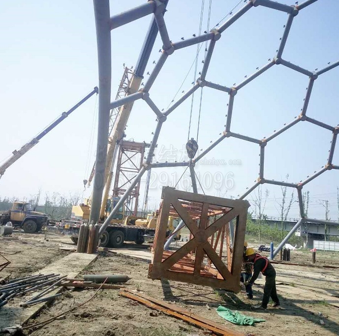 今天的工作任務(wù),主要分兩部分,主力繼續(xù)對三號球的鋼構(gòu)進(jìn)行地面拼裝,剩余一隊(duì)人員負(fù)責(zé)對二號球鋼構(gòu)的支撐架進(jìn)行拆解轉(zhuǎn)移,為三號球鋼構(gòu)吊裝做好準(zhǔn)備。連云港薔薇湖熱帶植物園一期工程三個半球形場館,目前已經(jīng)完成兩個半球的鋼構(gòu)完成拼裝,第三個已在地面完成三分之一量,即將準(zhǔn)備吊裝。