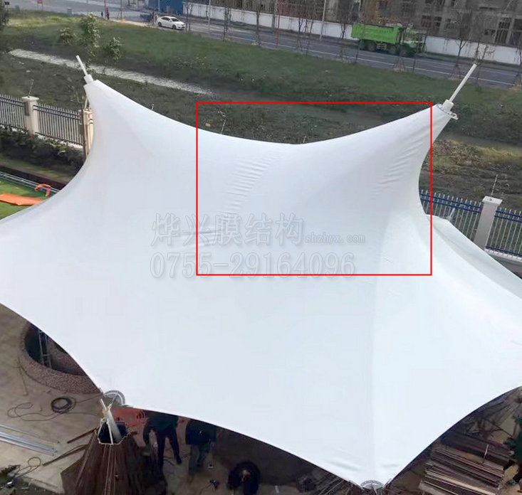 很多客戶看到自家的膜結(jié)構(gòu)出現(xiàn)褶皺,都會暴跳如雷,一定要施工方整改好才算完。其實,按膜結(jié)構(gòu)施工規(guī)范,是允許表面出現(xiàn)不大于5%的張拉偏差的,也就是說,有一點輕微的褶皺,從施工角度來說是正常的。如果想讓你的膜結(jié)構(gòu)盡量完美,最好還是找那些有實力有經(jīng)驗的專業(yè)膜結(jié)構(gòu)工程公司幫忙制作。