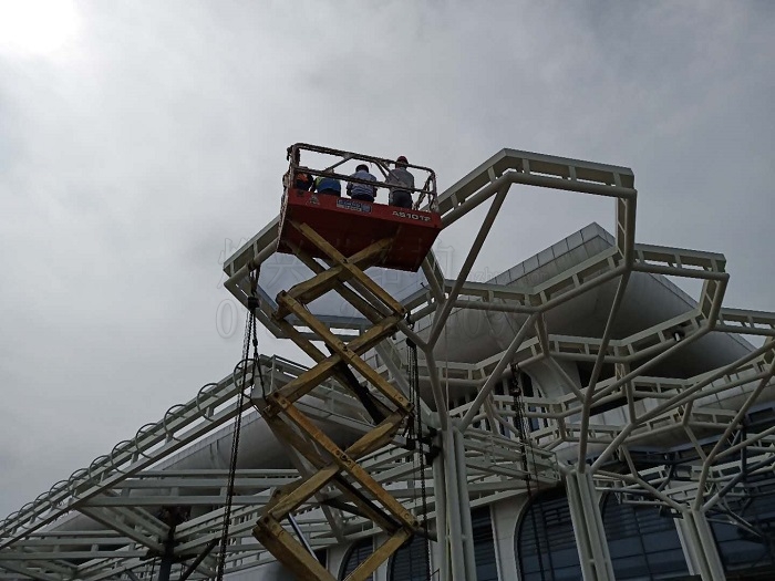 ETFE膜結(jié)構(gòu)項目,最費工期的是鋼結(jié)構(gòu)骨架制作施工。不同于一般的PTFE或者PVDF膜結(jié)構(gòu)工程,ETFE膜不能硬拉伸,所以其鋼結(jié)構(gòu)加工精度要求非常高,需要技術(shù)熟練的工人在專業(yè)人士的監(jiān)督下按嚴(yán)格工序進(jìn)行。貴港高鐵站雨棚的鋼結(jié)構(gòu)體量較大,要求現(xiàn)場拼接安裝,從今年3月22日起吊第一片雨棚骨架,到6月11日鋼結(jié)構(gòu)才全部完工,在工期計劃之內(nèi)。我們的第一個ETFE氣枕單元,是在6月12號上午完成安裝。