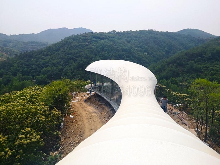 近日,燁興-泰安書吧膜結構工程悄然竣工。帶著“書吧”二字的工程項目,注定其必須被設計得精致典雅,還需要能工巧匠進行施工雕琢。項目的完工,是我們燁興膜結構項目團隊在深山中默默奮斗近一個月的成果。今天,小編將帶大家對項目做一個回顧分析。