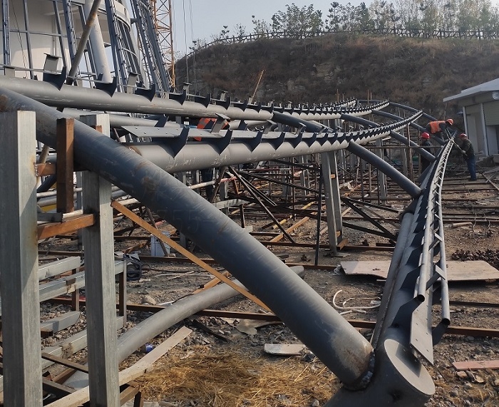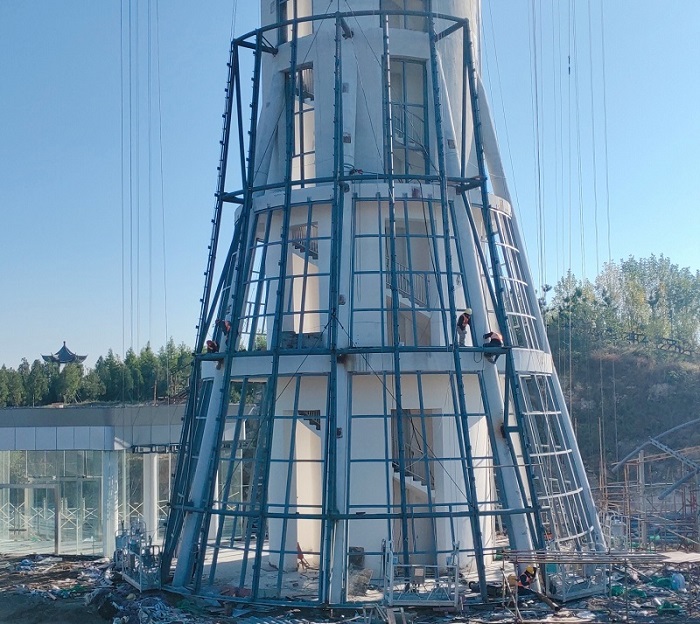 目前該項目19米以下鋼結(jié)構(gòu)框架安裝完畢,正在進行19米到43米第一單元拼裝,預(yù)計12月中旬前完成鋼結(jié)構(gòu)安裝,下旬進行裝膜作業(yè),整個項目一月初完工。此工程的難點是建設(shè)過程中全部是高空和超高空作業(yè),關(guān)鍵點是鋼結(jié)構(gòu)豎向梁直線度控制,這些都要求全方位的精度控制,為了做好這些工作,所有鋼結(jié)構(gòu)部件都是在我們的工廠進行專業(yè)處理后,再運到現(xiàn)場由我們具備10年專業(yè)工齡的師傅進行焊接拼裝。